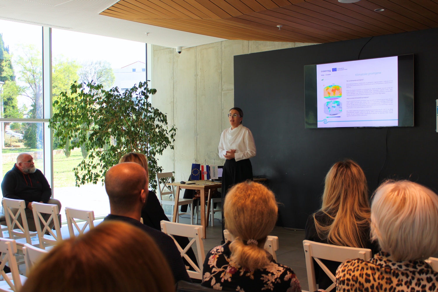 Radionica „Prilagodba klimatskim promjenama kroz učinkovite poljoprivredne prakse“, održana je u prostoru Studentskog centra Zadar s početkom u 11:00 sati. Organizirana je u okviru projekta GECO 2.2 (Green Economy and Carbon Credits), koji se sufinancira kroz Program prekogranične suradnje Interreg Italija – Hrvatska 2021.-2027. Projekt GECO 2.2 usmjeren je na razvoj regionalnog dobrovoljnog tržišta ugljičnih kredita temeljenog na održivim poljoprivrednim praksama. Njegov cilj je potaknuti primjenu održivih metoda koje doprinose smanjenju emisija stakleničkih plinova i povećanju pohrane ugljika u tlu i biomasi, čime se istodobno jača otpornost poljoprivrede na klimatske promjene i doprinosi europskim ciljevima klimatske neutralnosti. Ciljevi uključuju i povećanje prilagodbe na klimatske promjene kroz primjenu učinkovitijih poljoprivrednih praksi za skladištenje ugljika, kao i smanjenje rizika od poplava i suša putem promocije održivih poljoprivrednih ekosustava.