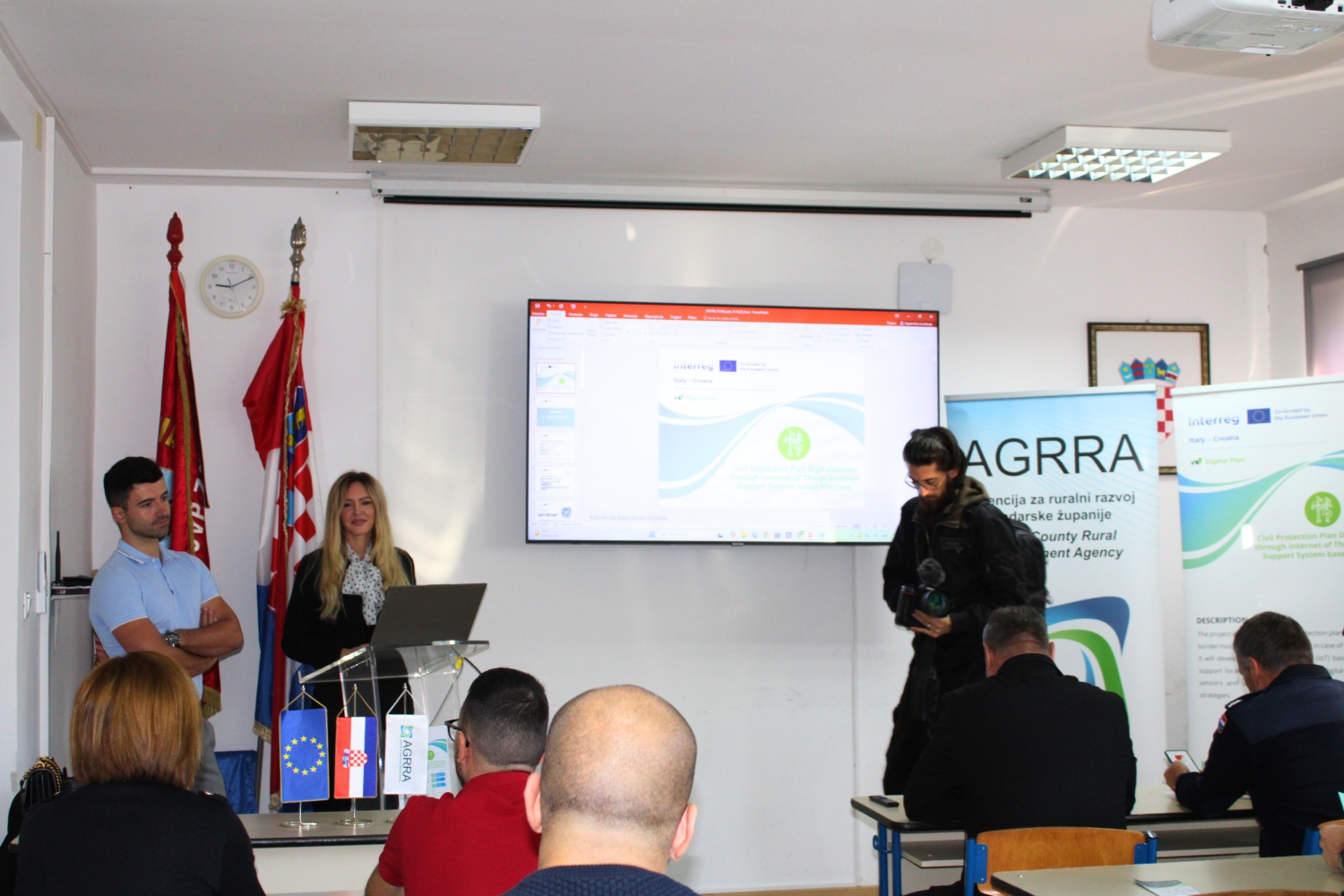 Mijo Grgić, stručnjak za krizno upravljanje iz tvrtke Alfa Atest Inspect d.o.o. predstavio je najvažnije dokumente i iskustva iz prakse, naglašavajući važnost sljedbe planova upravljanja u kriznim situacijama. Istaknuo je kako je digitalizacija civilnih planova od presudne važnosti, jer mnoge općine i gradovi još uvijek posjeduju dokumentaciju samo u papirnatom obliku, što otežava pristup informacijama u kriznim uvjetima. Luka Knez iz Zadar energije d.o.o. predstavio je opremu koja će se nabaviti kroz projekt, uključujući satelitske sustave i senzore, te objasnio kako oni doprinose otkrivanju rizičnih područja i pravovremenom djelovanju žurnih službi.