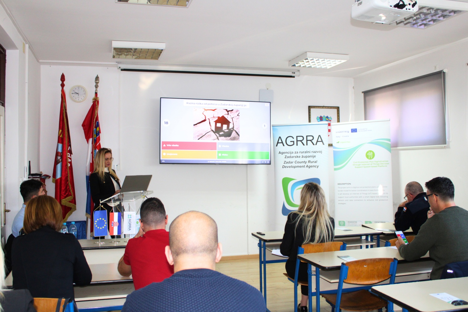 „Unaprijeđene i tehnološki osnažene intervencije vatrogasnih postrojbi za brži odgovor na klimatske i druge katastrofe“, radionica održana je u prostorijama Vatrogasne zajednice Zadarske županije s početkom u 09:00 sati. Organizirana je u suradnji s Vatrogasnom Zajednicom Zadarske županije i Javnom vatrogasnom postrojbom Zadar, a dio je projekta ITHR0200430 - Digital Plan, financiranog kroz Program prekogranične suradnje Interreg Italy-Croatia 2021-2027. Ukupna vrijednost projekta iznosi 2.665.725,35 EUR, a njegov je cilj digitalizacija planova civilne zaštite, jačanje kapaciteta lokalnih vlasti za upravljanje rizicima te razvoj suradnje između partnerskih zemalja.