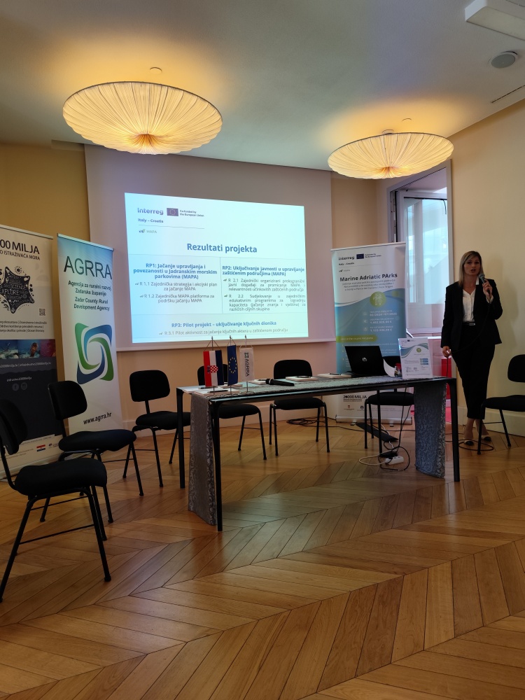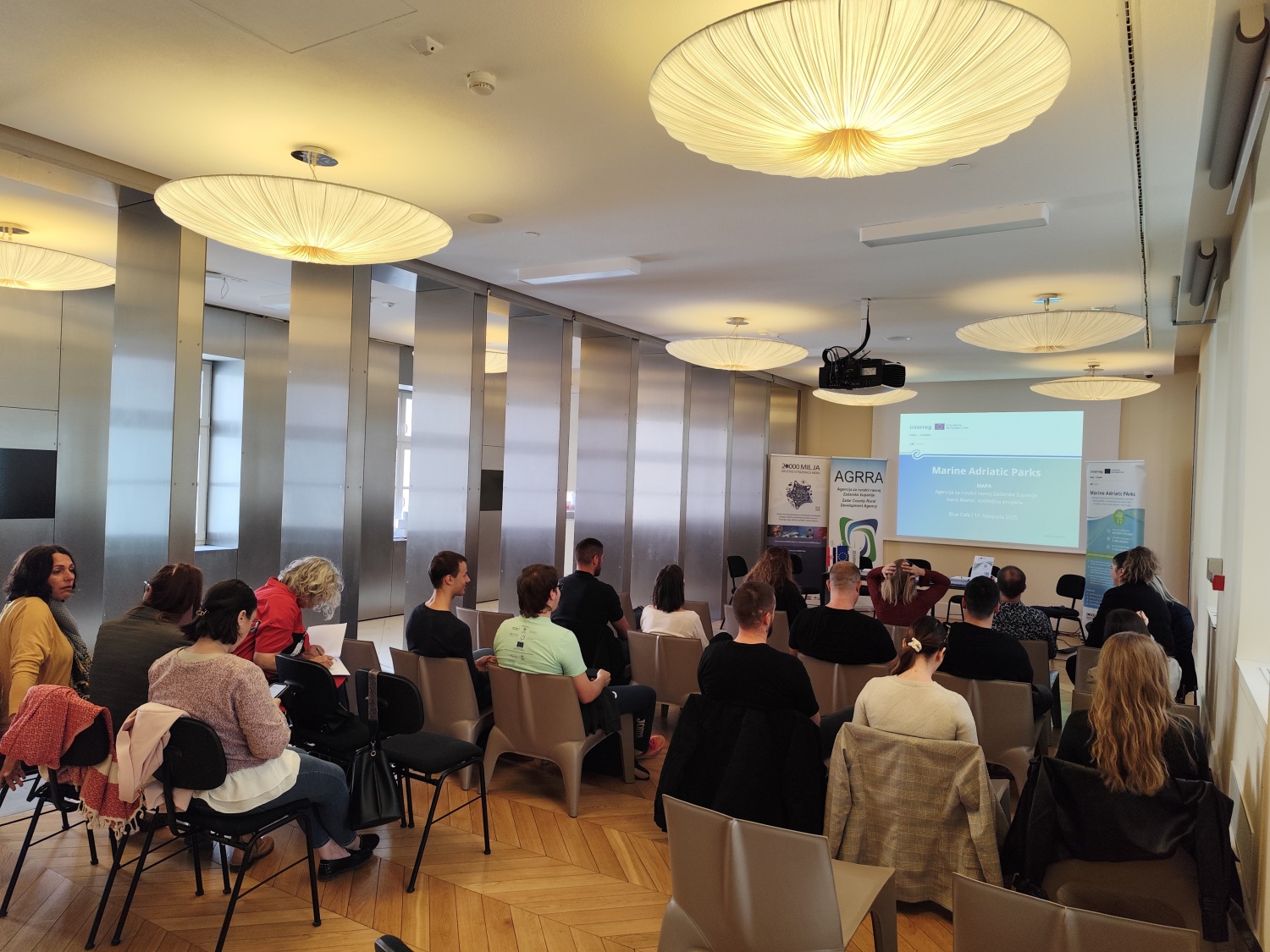 U okviru Dana otvorenih vrata EU projekata 2025., 17. listopada 2025., održana je radionica Blue Cafe “Zaštićena područja za otoke” u Multimedijalnoj dvorani II Palače u Zadru s početkom u 10:00 sati. Radionicu su organizirali Agencija za ruralni razvoj Zadarske županije - AGRRA, vodeći partner na projektu MAPA te Društvo istraživača mora 20.000 milja. Ova radionica dio je projekta MAPA (Marine Adriatic PArks), sufinanciranog iz programa Interreg Italija – Hrvatska 2021-2027.